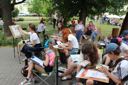 Свой старт фестивальное движение начало на площадке сквера им. Зайцева с уникальной программой: масштабный открытый городской пленэр с участием известных художников, педагогов, учеников художественных школ, образовательных программ, для всех гостей провели мастер-классы.