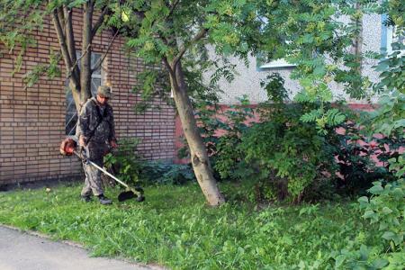 Используемая техника - ручные бензокосы. Для окоса дворовых территорий не привлекают минитрактора, потому что здесь, как правило, нет открытого свободного пространства: посажены деревья и кустарники, расположены детские и спортивные площадки, малые архитектурные формы.