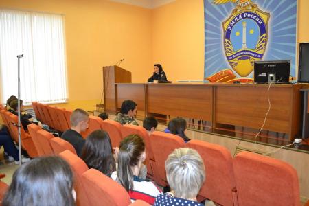 В начале встречи инспектора отдела кадров рассказали о порядке поступления в высшее учебное заведение системы МВД России, о специальностях, которым там обучают, описала процедуру поступления в ВУЗ, какие необходимы документы, из чего состоят вступительные испытания, какие необходимы навыки, а так же подробно рассказала о преимуществах обучения в Университете МВД имени В.Я. Кикотя, такие как: бесплатное получение высшего образование, денежное, форменное обеспечение, обязательное трудоустройство по окончании обучения и другие.