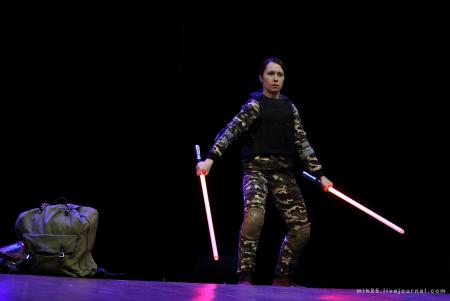 Спортсменка МБУ ВИСКК «Коломенский кремль» Мария Гарифуллина, воспитанница инструктора по спорту Алексея Черябкина представила судьям и зрителям фантастическую композицию в стиле саберфайтинга «Метро 2033». Она стала победителем в дисциплине «Упражнение Соло».