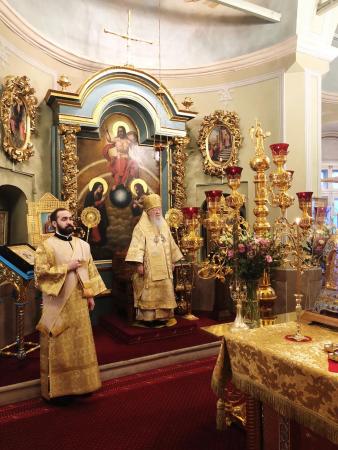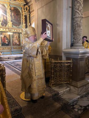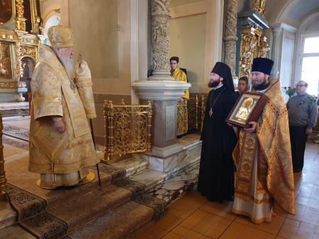 После окончания богослужения протопресвитер Владимир Диваков огласил поздравительный адрес от Святейшего Патриарха Московского и всея Руси Кирилла. Викарий Московской епархии епископ Луховицкий Петр обратился с поздравительным словом к Владыке митрополиту от духовенства и прихожан Московской епархии и преподнес ему в дар икону святителя Николая Чудотворца.