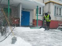 К работе по уборке снега на придомовых территориях сегодня привлечены 169 человек. Работает девять единиц снегоуборочной техники на тракторной основе и восемь шнеков (ручных снегоуборочных машин) со щётками. В первую очередь очищают выходы из подъездов, тротуары вдоль домов и детские игровые площадки.
