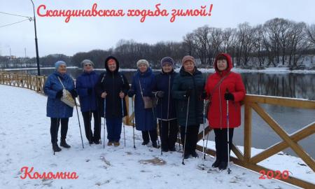 Участники проекта "Активное Долголетие" ГБУСО МО «КЦСОиР «Коломенский» с удовольствием занимаются скандинавской ходьбой в зимнее время.
