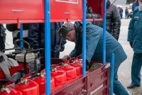 В рамках смотра межведомственная комиссия выполнила выборочную проверку автомобилей для спасательных операций. Здесь стояла пожарная и аварийно-спасательная техника. Каждый автомобиль оснащен специальной экипировкой для выполнения операций.