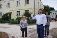 Глава округа проверил ход работ по благоустройству двора на улице Октябрьской революции