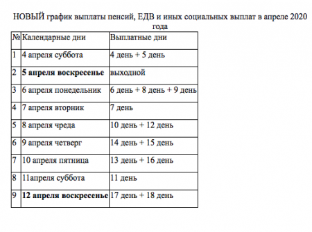 График выплаты пенсий на апрель 2020 года!
