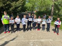 В подарок от инспекторов по пропаганде безопасности дорожного движения ученики получили тематические памятки.
