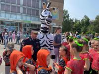 Инспектор по пропаганде безопасности дорожного движения Анатолий Губин напомнил о правилах поведения на дороге. В завершении мероприятия инспекторы ОГИБДД вместе с ростовой куклой «Зеброй» раздали ребятам памятки и световозвращающие элементы.