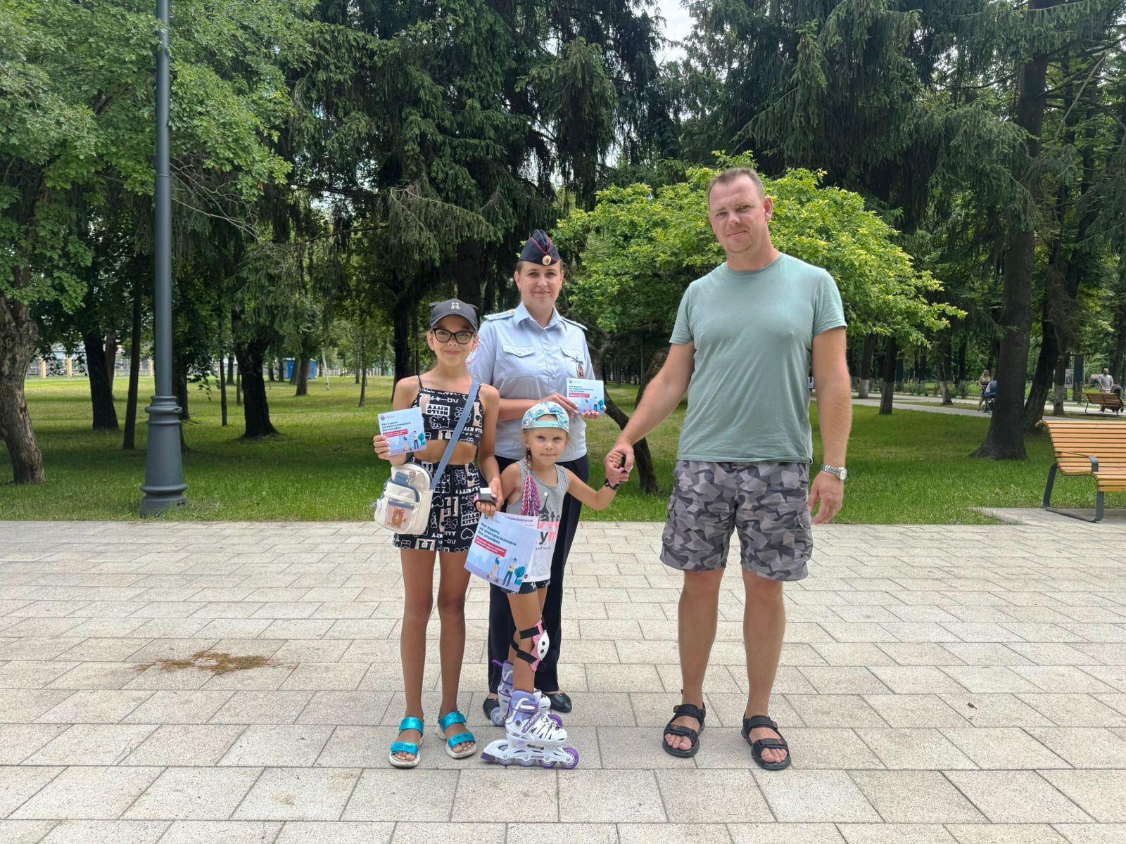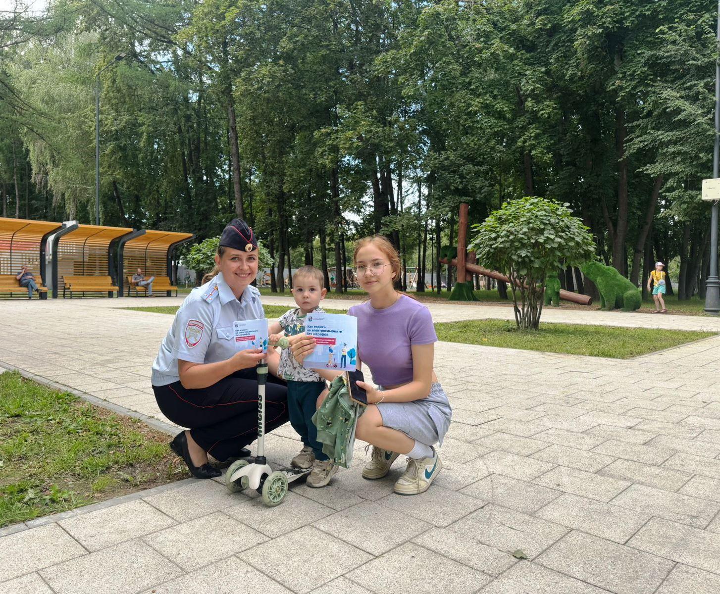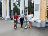 Далее мероприятие продолжилось с посетителями городского парка, где в рамках профилактических бесед взрослым и детям полицейские рассказали о правилах пользования СИМ и обязательном применении средств защитной экипировки.