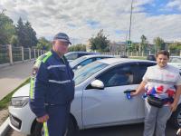 Автоинспекторы провели профилактические беседы с пешими участниками дорожного движения и разместили информационные таблички на ручках автомобилей.