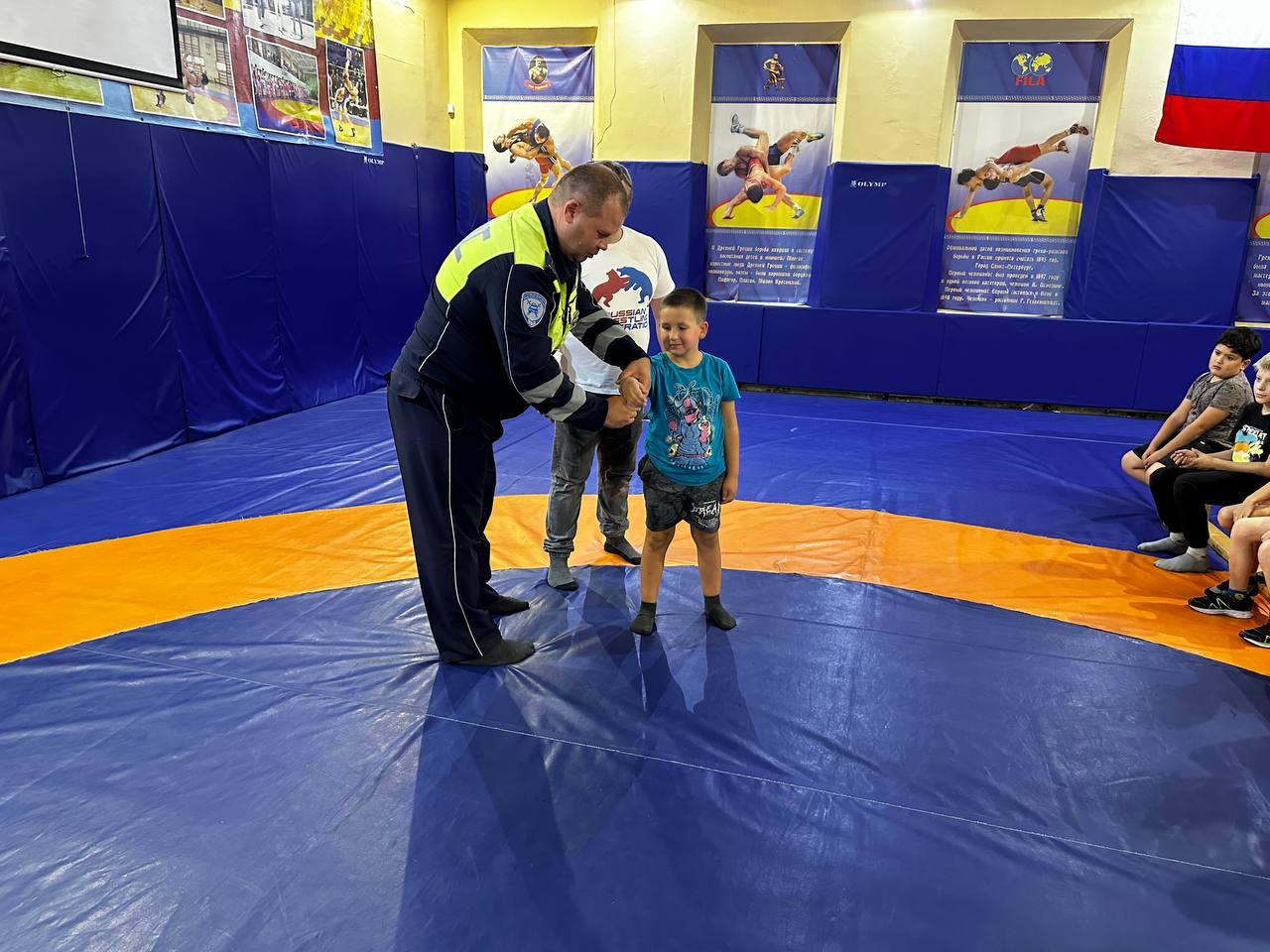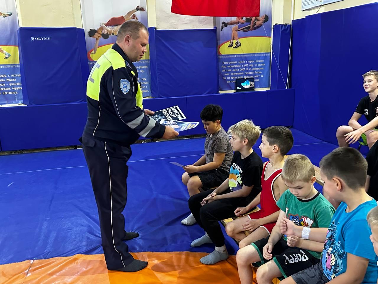 Сотрудники Госавтоинспекции Г.о. Коломна провели профилактическую беседу с воспитанниками секции по греко-римской борьбе.