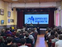 Юноши и девушки увидели тематические видеофильмы с мест дорожных происшествий, которые наглядно показывали последствия пренебрежения ПДД, а автоинспекторы рассказали об ответственности за их нарушение.