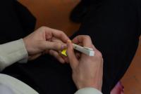 Следующая часть мероприятия была выстроена по методике социально-психологического проекта «Краш-курс», направленного на интенсивное эмоциональное вовлечение аудитории. Студентам раздали стикеры, на которых они написали свои желания, затем стикеры приклеили к шарику – символу Жизни. После этого участникам продемонстрировали, как этот воздушный шарик лопается в одно мгновенье - вместе с несбывшимися мечтами: малейшая ошибка на дороге может привести к трагическим последствиям.