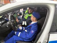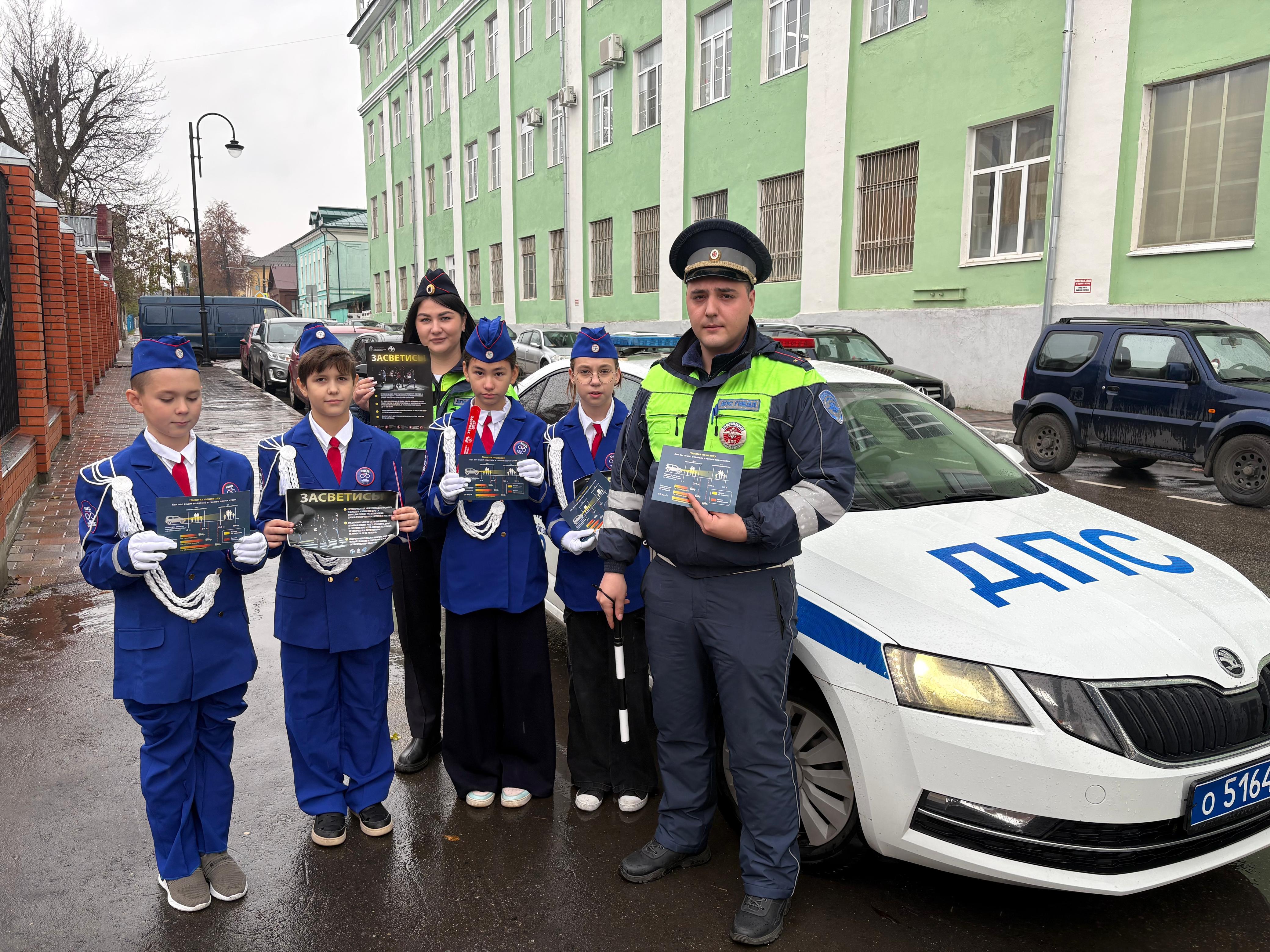 Служебный автомобиль Госавтоинспекции и специальные устройства увидели ребята из отряда ЮИД коломенской школы