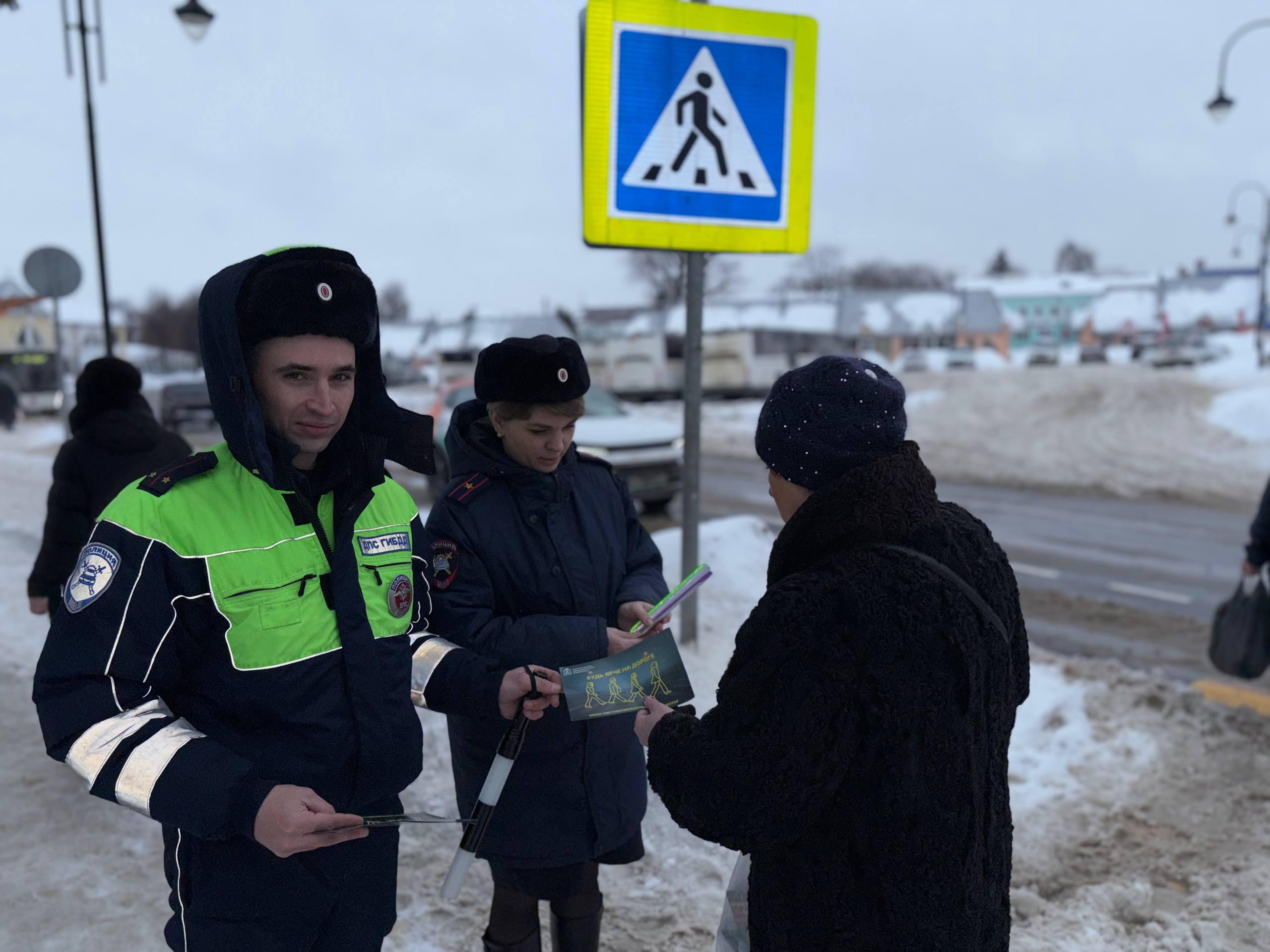 Пешеходам в Коломне подарили светоотражающие аксессуары