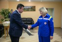«От всех жителей Городского округа Коломны и от себя лично я бы хотел поздравить вас с профессиональным праздником, который был накануне. Ваша работа беспокойна и безотлагательна. Бесспорно, во времена пандемии на вашу службу легла серьёзная нагрузка, часто приходилось работать без сна и отдыха, но вы с достоинством выстояли. Сейчас жизнь входит в привычный ритм. И хочется сказать вам «спасибо» за спасенные жизни и своевременно оказанную помощь», – поблагодарил за работу сотрудников скорой Александр Владимирович.