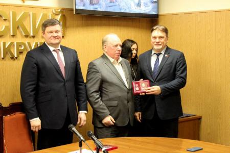На оперативном совещании в администрации депутат Московской областной думы Алексей Мазуров вручил юбилейные медали «90 лет Московской области».