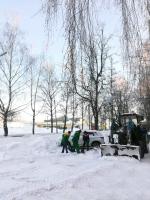 - На детских площадках снега тоже неимоверно много, - продолжает Юлия Ивановна. - Сугробы насыпали такие, что под ними скрыты даже некоторые игровые элементы. Сейчас наши сотрудники всё аккуратно вручную расчищают, чтобы не повредить ни покрытие площадки, ни сами качели или карусели.