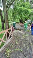 Первоочередное внимание уделили аварийным участкам, тем, где упавшие ветки перегородили тротуары или повисли на деревьях. Отдельная бригада вышла на Москворецкую набережную: вблизи реки стихийные явления бушевали особо сурово.