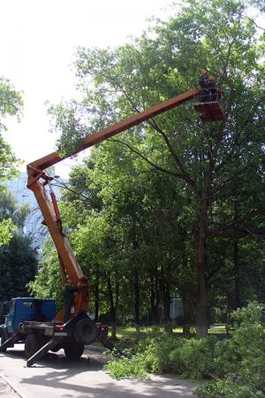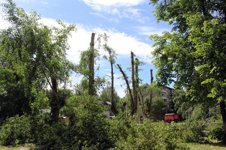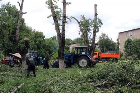 Сначала произвели омолаживающую обрезку пяти тополей, учитывая пожелания жителей. Тополь – крупномерное, быстрорастущее дерево, достигающее в высоту более двадцати метров. Этим деревьям около пятидесяти лет, к тому же они повреждены тополиной молью, поэтому в августе листья уже опадают, ветки усыхают и могут представлять опасность для здоровья и имущества людей, особенно при сильных порывах ветра.
