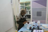 Кисти, краски и холсты – набор, которому мог бы позавидовать и художник, - всего лишь часть необходимого инвентаря для участников номинации «Штукатур-маляр» областного конкурса «Лучший по профессии»