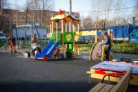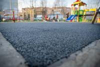 Безопасное резиновое покрытие уложили на новой детской площадке во дворе дома 84 по улице Суворова