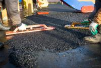 - Прежде, чем начать работать, надо подготовить основание, очистить его и обработать грунтовкой, - поясняет рабочий Руслан. - Раствор мы готовим на месте: смешиваем резиновые гранулы с клеевой основой. Затем наносим состав слоем толщиной в сантиметр, разравниваем и утрамбовываем разогретым валиком. После завершения работ, ходить по новому покрытию можно будет только спустя сутки.