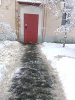 Зимой во время уборки придомовой территории дворники в первую очередь приводят в порядок входные группы