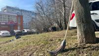Дворовая территория, растянувшаяся вдоль набережной Дмитрия Донского, пожалуй, самая масштабная в микрорайоне Колычёво. Она включает в себя более 10 домов, таких как №№ 9, 11 и 13 по улице Южной, №№ 7, 8 и 10 по улице Филина и другие. Силами двух закреплённых за территорией дворников одномоментно привести в её в порядок с наступлением весны просто нереально.