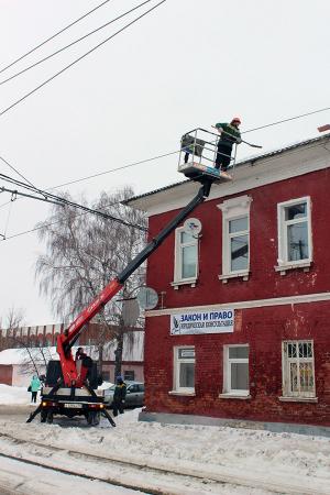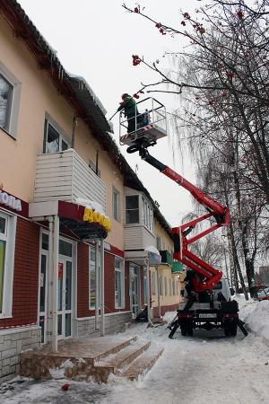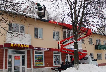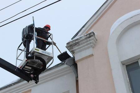 ООО «Департамент городского хозяйства» производит очистку кровель жилых домов от снега, наледи и сосулек. Работает три автогидроподъемника (20 м), промышленные альпинисты, на малоэтажных домах обивают сосульки снизу, используя специальные приспособления.