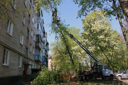Председатель совета дома №43 по ул. Красногвардейская Нина Миронова отметила, что жители дома активно включаются в благоустройство – следят за чистотой, устраивают палисадники, внимательно смотрят за состоянием деревьев и кустарников во дворе, и ДГХ сразу откликается на наши просьбы. Прямо у подъезда старая черёмуха наклонилась в сторону дома: во время сильного ветра ветки стучали по окнам. Было принято решение спилить её до основания. Также удалили и сухой аварийный ясень вдоль тротуара.