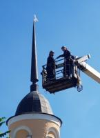 На прошлой неделе спасатели поисково-спасательного отряда №7 провели высотные работы по демонтажу скульптуры Трубящего ангела, установленной на шпиле одной из башен Ново-Голутвинского монастыря.