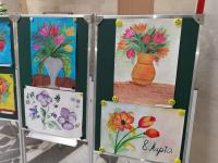 На выставке можно увидеть много букетов самых разнообразных весенних цветов. Экспозиция получилась очень яркой и праздничной. Ребята проявили удивительную выдумку, фантазию, творчество.