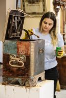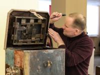 Сотрудники краеведческого отдела городского центра культуры и досуга ведут работы по реставрации экспонатов фонда. На фото: процесс очистки поверхности металлического сейфа из конторы фабриканта М.Ф. Щербакова.