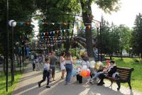 Праздничное настроение создавали солисты и коллективы Дворца культуры. Также здесь работали мастер – классы от городских библиотек. Все желающие могли покататься на карусели, попрыгать на батуте, отведать сладкой ваты. Завершился праздник молодёжной дискотекой.