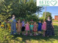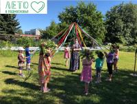 Участники программы узнали много интересного о праздновании Троицы, о народных традициях, приняли участие в народных играх и троичных обрядах, плели венки из веточек берёзы и дарили их друг другу, водили хороводы.