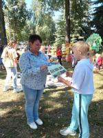 И, конечно же, для зрителей в этот день была подготовлена конкурсно - игровая программа. Вместе с танцевальным коллективом «Веселые ребята» зрители приняли участие в танцевальном флешмобе «Вместе дружная семья». Свои актерские данные смогли продемонстрировать и взрослые, и дети, приняв участие в театральной постановке «Курочка – Ряба».