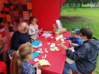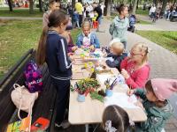 На территории детского городка на ул. Пионерская царит искусство. Здесь рисуют картины, создают карнавальные маски и любуются выставками из рисунков. Ещё гостям презентуют новый проект библиотеки имени Ивана Лажечникова «Эмоциональная карта Коломны», с помощью которой жители могут с помощью специального приложения делиться с единомышленниками своим мнением о городских местечках.