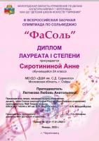 Озерчанка Анна Сиротинина учащаяся 2 класса детской школы искусств им. С.Д.Сурмилло успешно выступила на III Всероссийской заочной олимпиаде по сольфеджио «ФаСоль».