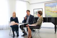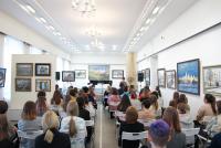 На встречу с авторами выставки пришли не только художники, любители искусства, но и много юных художников – учащихся Детской художественной школы им. Михаила Абакумова, студентов кафедры ИЗО ГСГУ, которые перенимают в подобных встречах творческий опыт профессиональных художников.
