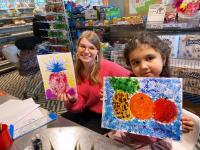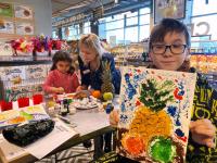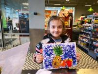 Для посетителей здесь проходил мастер-класс по рисованию мятой бумагой. Участники рисовали фрукт, согласно технике, - яркие и весенние натюрморты остались им на память.