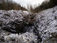 Это незаконно выкопанная траншея, в которой находился бытовой мусор, повреждение деревьев, повреждение напочвенного покрова.