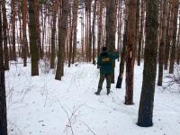 Сотрудники лесной охраны Маливского участкового лесничества проводят отвод лесных участков под санитарные рубки с целью улучшения состояния лесов Московской области.