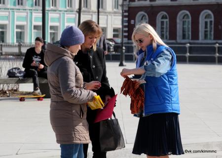 Активисты Коломенского штаба Волонтеров Победы уже поддержали акцию, и вчера на Площади Двух Революций вручали горожанам праздничную символику. Помимо самой ленты, каждый желающий получил листовку с информацией об истории Георгиевской ленты и о том, как ее рекомендуется носить.