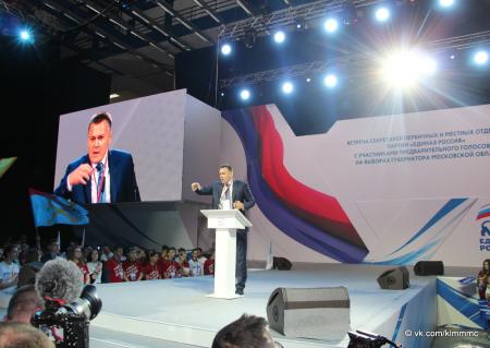 Всего в Ледовом дворце «Витязь» собралось порядка 6 тысяч человек. «Сегодня очень важный, решающий день, день, который посвящен встрече с участниками предварительного голосования. Уже вскоре нам предстоит избрать кандидата на пост губернатора Московской области», – сказала, открывая встречу, секретарь регионального отделения партии «Единая Россия» Лидия Антонова.