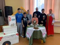 Мероприятие содержало знакомство с четырьмя традициями: гостеприимство, хлебосольство, народное гулянье и чаепитие. С этими традициями участников викторины познакомила Хозяйка (Непряхина Юлия), которая встречала гостей хлебом- солью, горячим чаем и народными забавами.