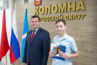 Первый шаг во взрослую жизнь. В Коломне в торжественной обстановке состоялась очередная церемония вручения паспортов юным гражданам страны. Документ школьникам вручил глава Городского округа Коломна Александр Гречищева.