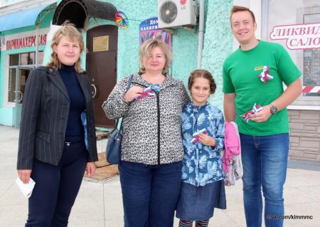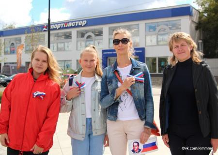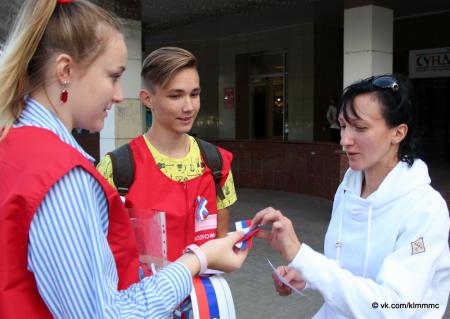 Так, специалисты Молодёжного центра «Выбор» раздавали всем желающим российские ленточки и автонаклейки на площади Двух Революций, а активисты Молодёжного центра «Русь» порадовали жителей микрорайона Колычёво.