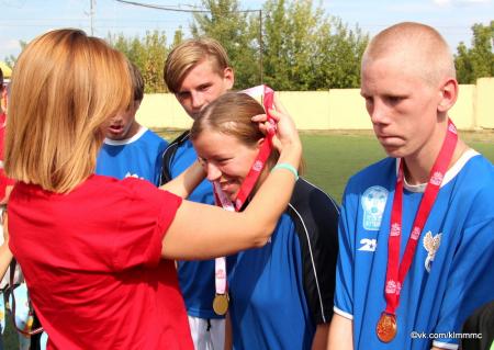 На футбольном поле Коломенского детского дома-интерната сразились три команды: ребята из КДДИ, воспитанники Кутузовской коррекционной школы-интерната города Домодедово и сборная волонтеров «Живу спортом».