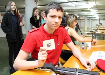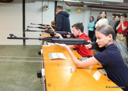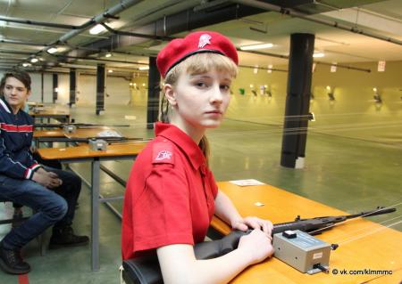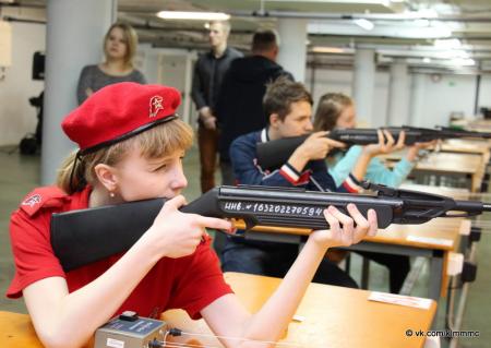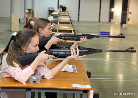 После проведения инструктажа по технике безопасности на огневой рубеж вышли первые стрелки. Соревнования проходили по системе ГТО. Каждый участник выполнял три пробных и пять зачетных выстрелов, которые определяли его результат. Стрельба выполнялась из положения сидя с опорой локтями о стол. Первая группа отстрелялась – к стрельбе приступали следующие юнармейцы. К слову, число представительниц прекрасного пола не уступало количеству юношей.